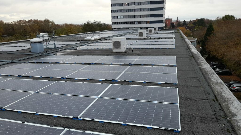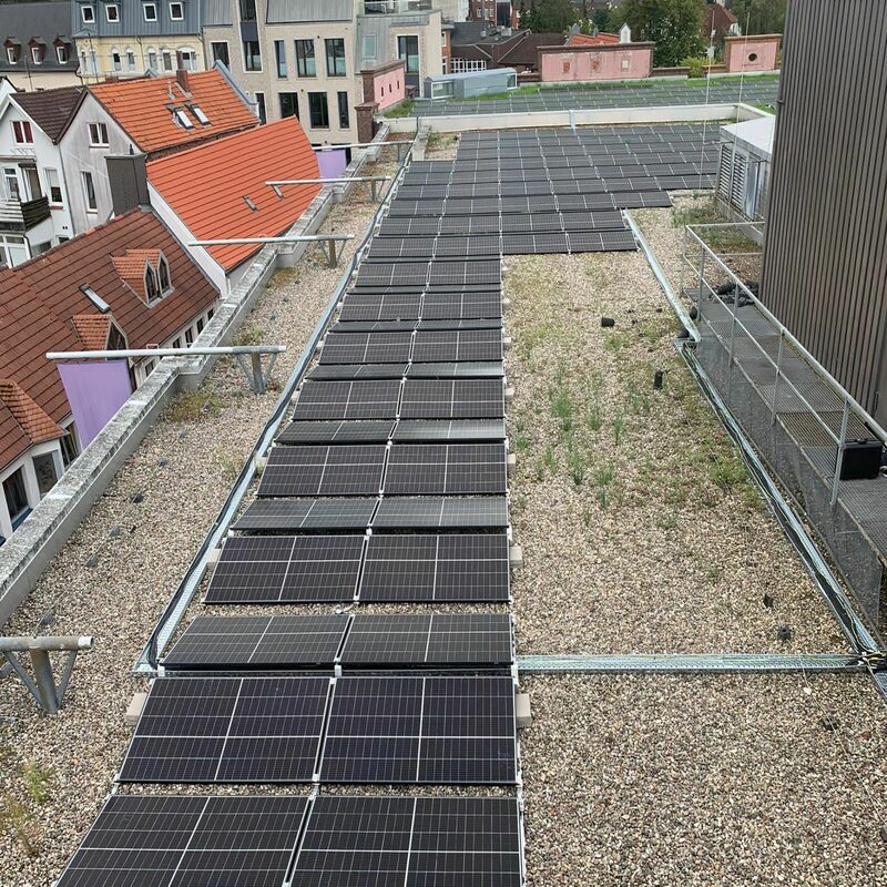 Wir übernehmen die Planung, Lieferung, Installation, Inbetriebnahme, Fernüberwachung, Optimierung und Wartung. Bei der Immobilie in Lübeck handelt es sich um ein privates Bildungszentrum. 230 Module und 2 Wechselrichter werden auf dem Flachdach montiert. Insgesamt ergibt sich eine Photovoltaik-Leistung von 80 kWp. Wir bedanken uns bei unserem Kunden und freuen uns, dass er durch das gemeinsam erfolgreich abgeschlossene Projekt in Zukunft 35 Tonnen CO₂ pro Jahr einspart und freuen uns auf eine weiterhin erfolgreiche Zusammenarbeit!