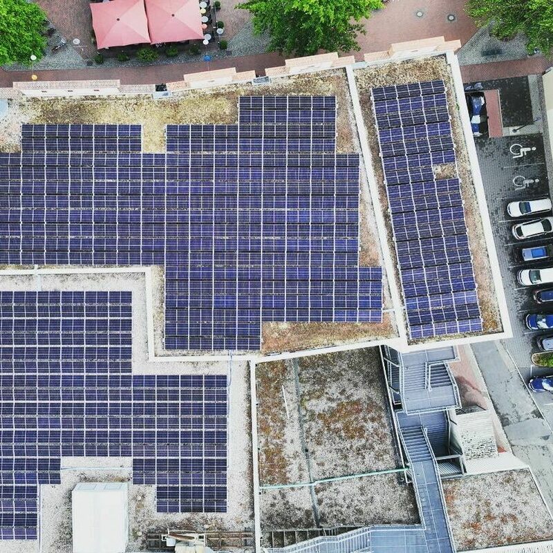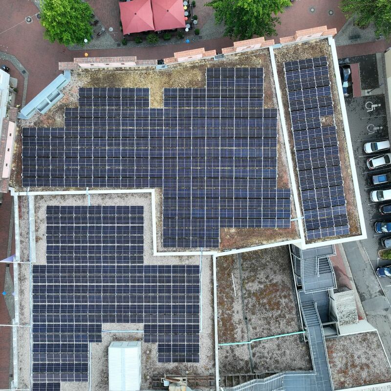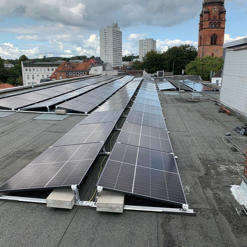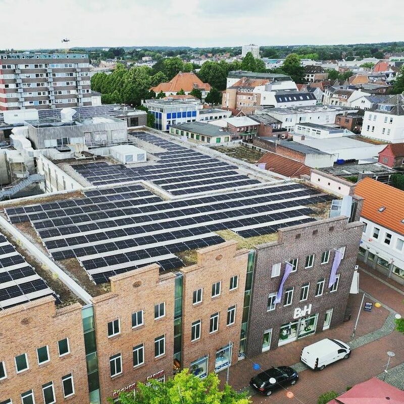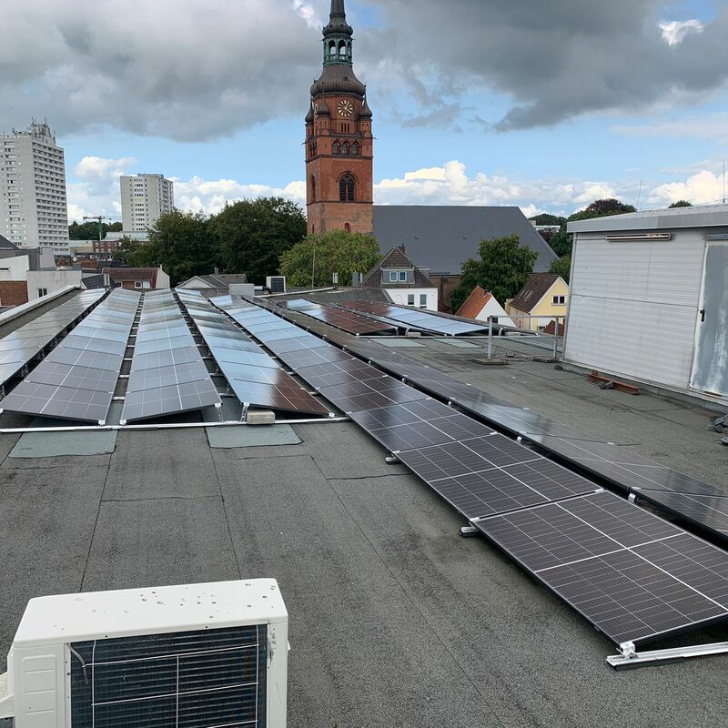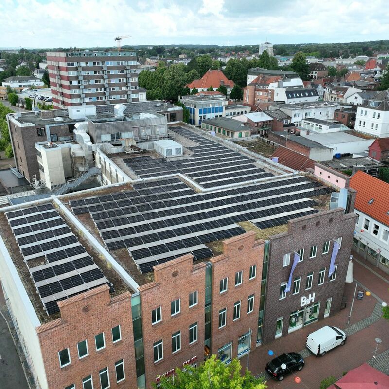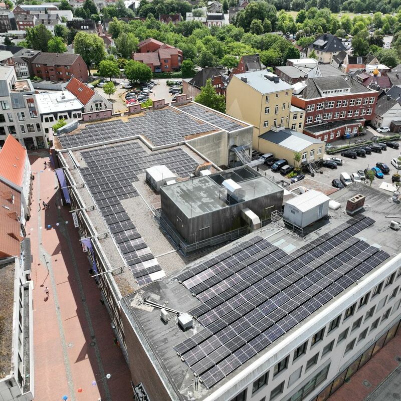 Wir übernehmen die Planung, Lieferung, Installation, Inbetriebnahme, Fernüberwachung, Optimierung und Wartung. Bei der Immobilie in Itzehoe handelt es sich um ein großes Modehaus. 570 Module und 2 Wechselrichter wurden auf dem Flachdach montiert. Insgesamt ergibt sich eine Photovoltaik-Leistung von 230 kWp. Wir bedanken uns bei unserem Kunden und freuen uns, dass er durch das gemeinsam erfolgreich abgeschlossene Projekt in Zukunft 100 Tonnen CO₂ pro Jahr einspart und freuen uns auf eine weiterhin erfolgreiche Zusammenarbeit!